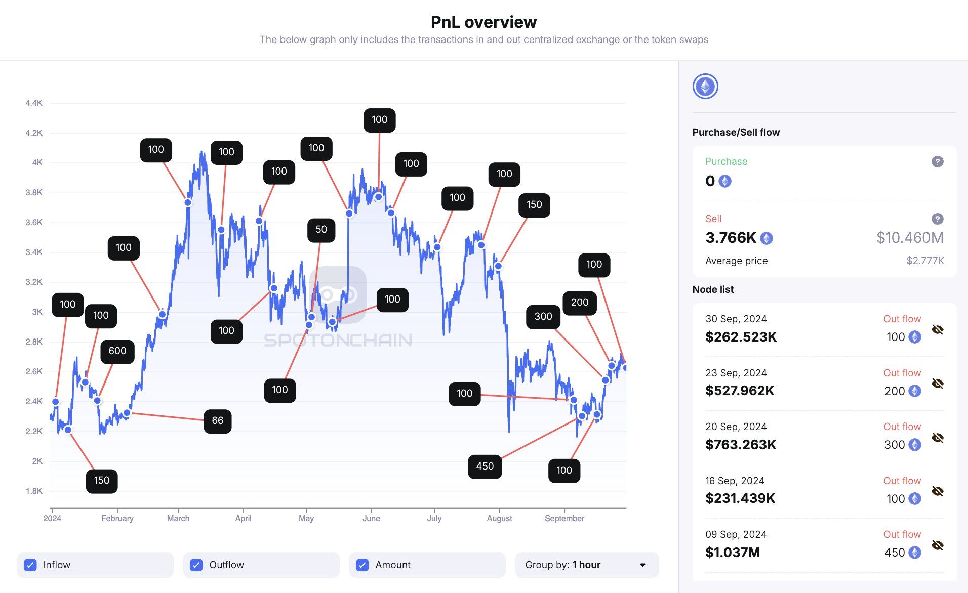 Met een gemiddelde koers van $2.777 werd in september 1.250 ETH verkocht, ter waarde van $3,06 miljoen. In totaal heeft de Ethereum Foundation in 2024 3.766 ETH verkocht, met een totale waarde van $10,46 miljoen.