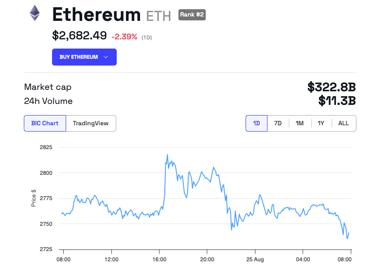 Deze bewegingen van crypto-whales en instellingen hebben gezamenlijk bijna $73 miljoen aan verkoopdruk in de markt gebracht. Te midden van deze verkopen is de Ethereum koers licht gedaald met 2,39% in de laatste 24 uur. Het wordt momenteel verhandeld tegen $2,682.49.