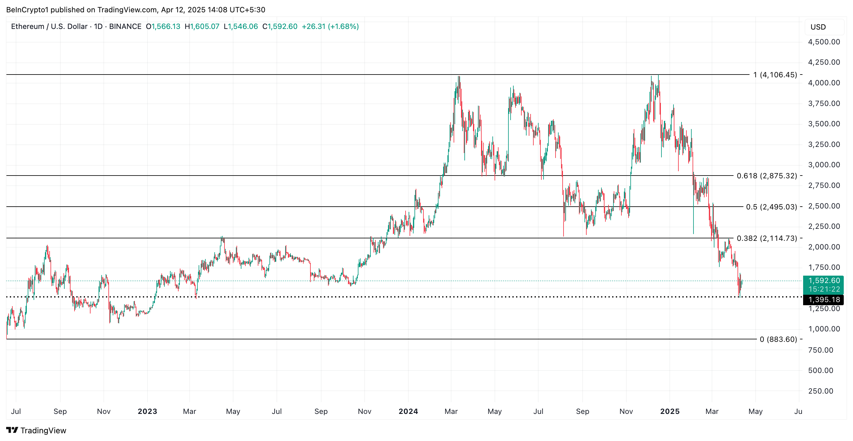 In dit scenario zou de altcoin onder de $1.500 kunnen dalen om $1.395 te bereiken.