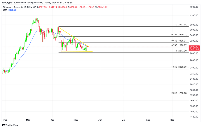 Als deze projectie echter ongeldig wordt verklaard en de coin boven de bovenste trendlijn van deze driehoek breekt, kan het op korte termijn handen wisselen boven $3.100.