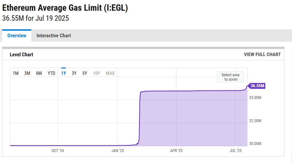 Op 20 juli bevestigde Ethereum-medeoprichter Vitalik Buterin dat het Layer-1 (L1) gaslimiet al was verhoogd naar 37,3 miljoen. Daarnaast ondersteunt bijna 50% van de stake een verhoging naar 45 miljoen.