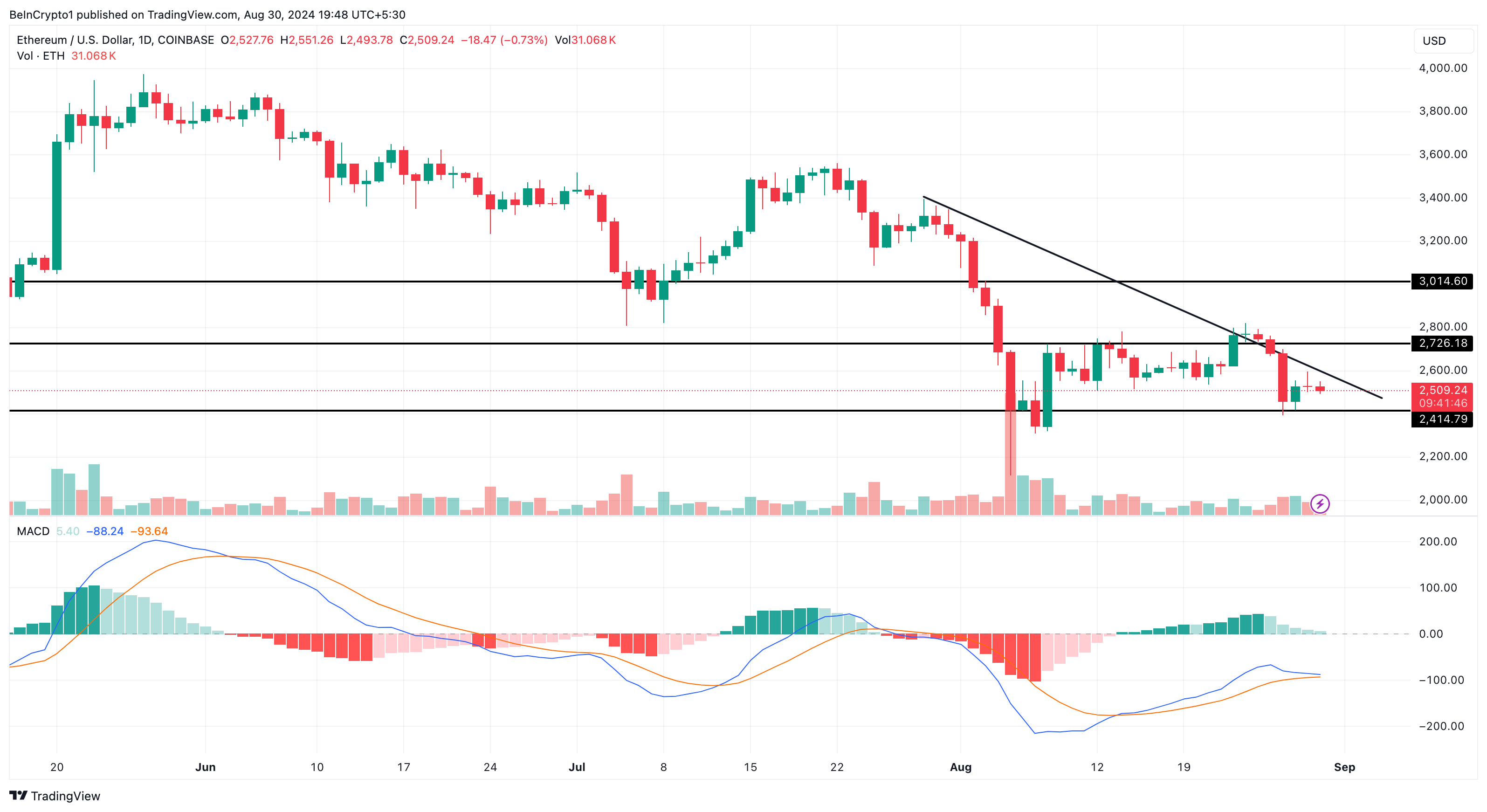 Op 24 augustus bereikte de koers van ETH $2.800 maar werd op dat niveau afgewezen. Zal de koers in het voordeel van de handelaren bewegen?