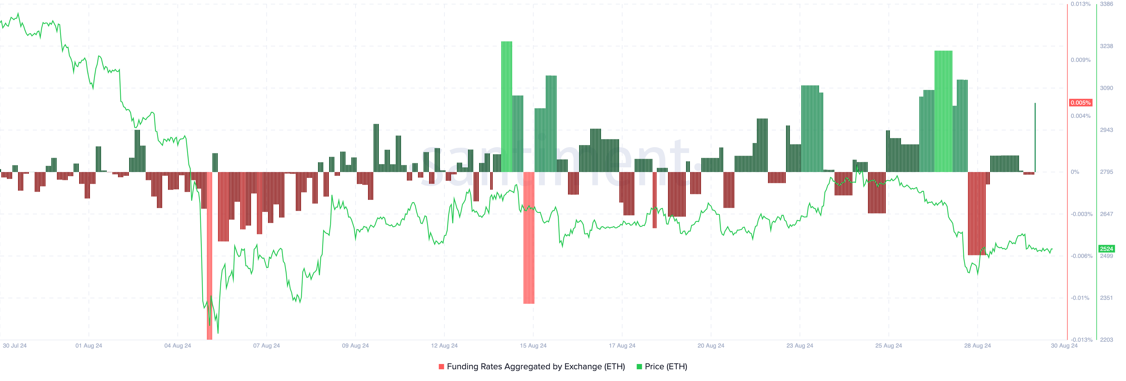 Het is belangrijk op te merken dat de Funding Rate ook koersbewegingen kan beïnvloeden. Als de funding sterk negatief is terwijl de koers stijgt, suggereert dit agressief shorten, wat een bullish indicator kan zijn. Echter, de recente piek in funding, gekoppeld aan de koersstijging, suggereert dat Ethereum mogelijk een nieuwe bearish ronde kan ervaren voordat het mogelijk terugveert.