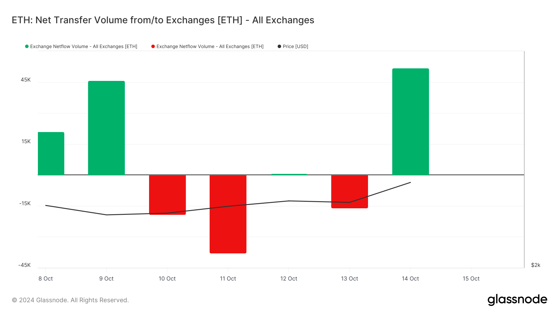 Echter, de bijbehorende toename in Ethereum’s netflow volume suggereert dat een aanzienlijk deel van deze geactiveerde coins naar exchanges is gestort. BeinCrypto’s beoordeling van Ethereum’s exchange-activiteit onthult dat op maandag 51.881 ETH coins, gewaardeerd op meer dan $135 miljoen op basis van de huidige marktprijzen, naar crypto exchanges zijn overgebracht.