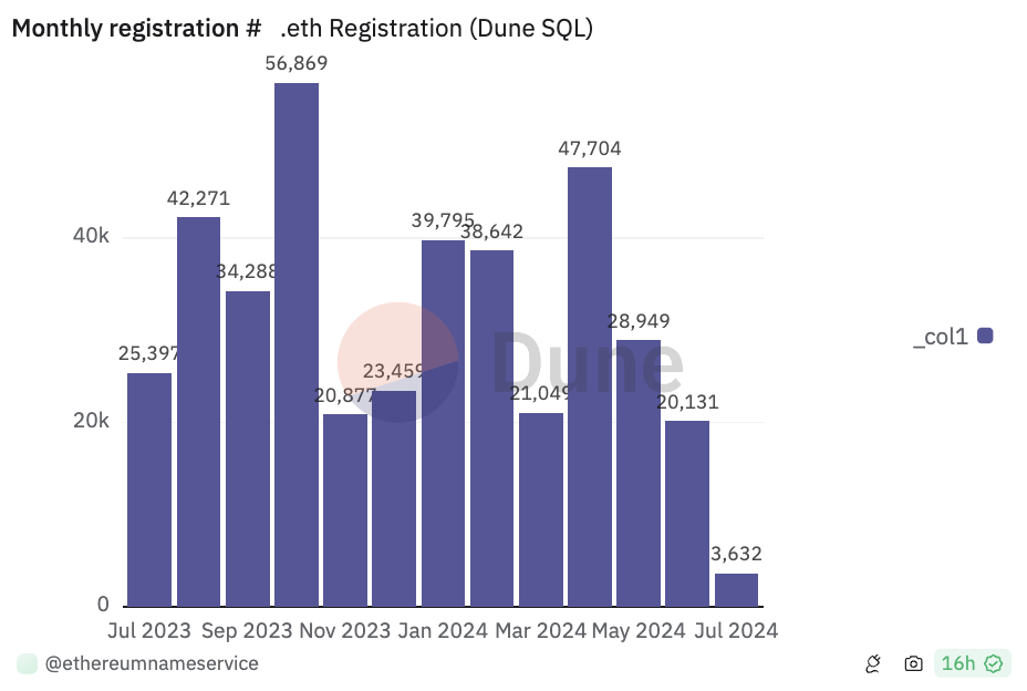 Ethereum Name Service (ENS) eindigt Q2 met daling in naamregistraties