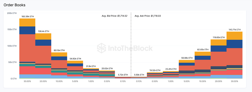SponsoredGeaggregeerde data van de orderboeken van 21 erkende beurzen, waaronder Binance en Coinbase, laat zien dat de bulls actieve orders hebben geplaatst om 513.780 ETH te kopen. Dit weegt aanzienlijk zwaarder dan de 451.500 ETH verkooporders die beschikbaar zijn rond de huidige prijzen.
