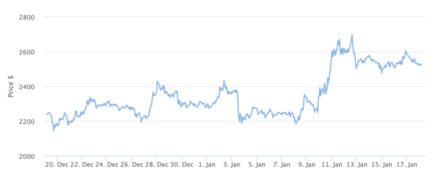 Op het moment van publicatie noteert Ethereum $2.527. Bovendien weerspiegelt dit een 3-maands groei van ongeveer 59%.