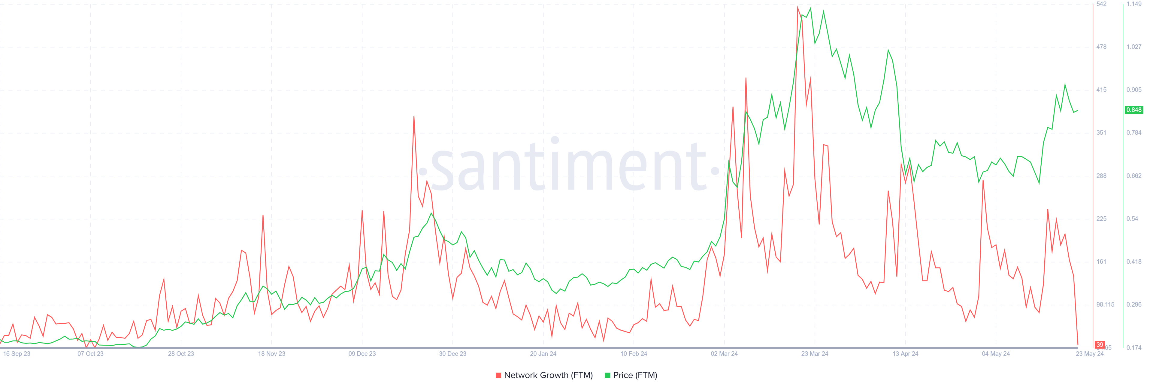 Dit gevoel wordt verder gestaafd door het gebrek aan stimulans dat potentiële investeerders op dit moment opmerken. De daling in netwerkgroei suggereert dat Fantom tractie verliest in de markt.