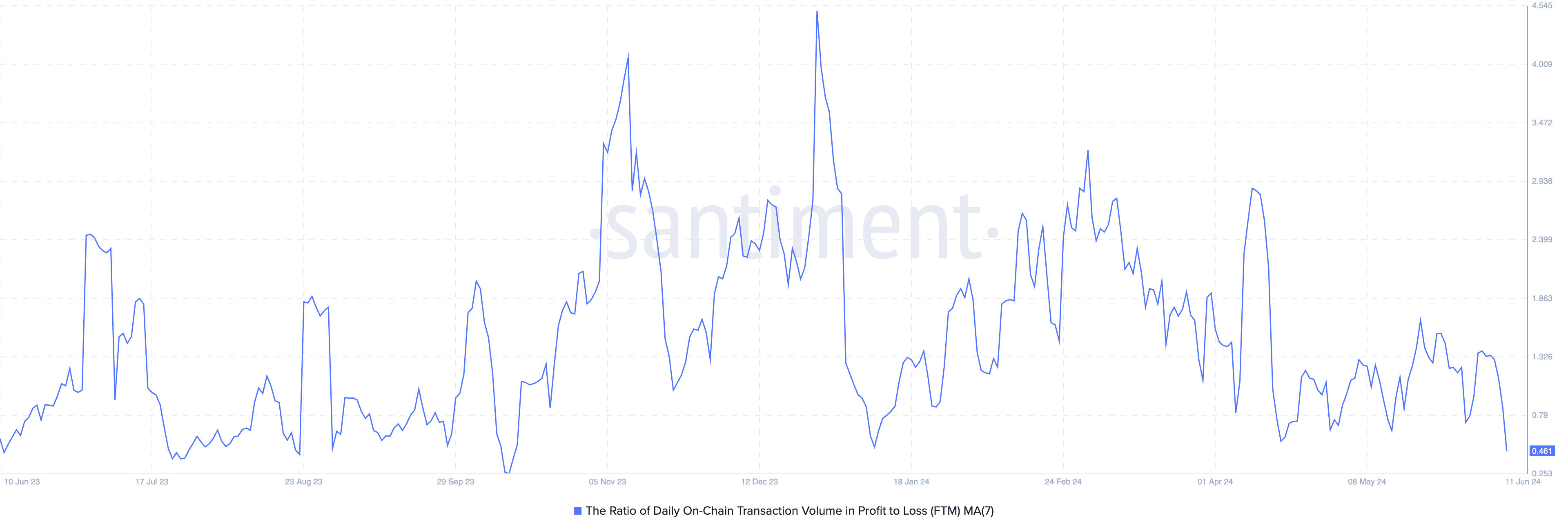 Een beoordeling van de dagelijkse verhouding van het transactievolume van de FTM in winst ten opzichte van verlies met behulp van een zevendaags voortschrijdend gemiddelde bevestigde dit. Op het moment van schrijven was dit 0,44.