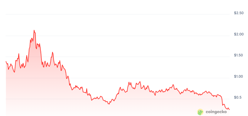 Op 21 oktober handelde Fetch.ai’s native token FET rond $0,25, wat een daling van 9% weerspiegelt over de voorgaande 24 uur te midden van verhoogde marktvolatiliteit en onzekerheid binnen de community. FET bereikte een all-time high van $3,45 eind maart 2024, wat betekent dat de huidige prijs een daling van ongeveer 92% ten opzichte van die piek vertegenwoordigt.