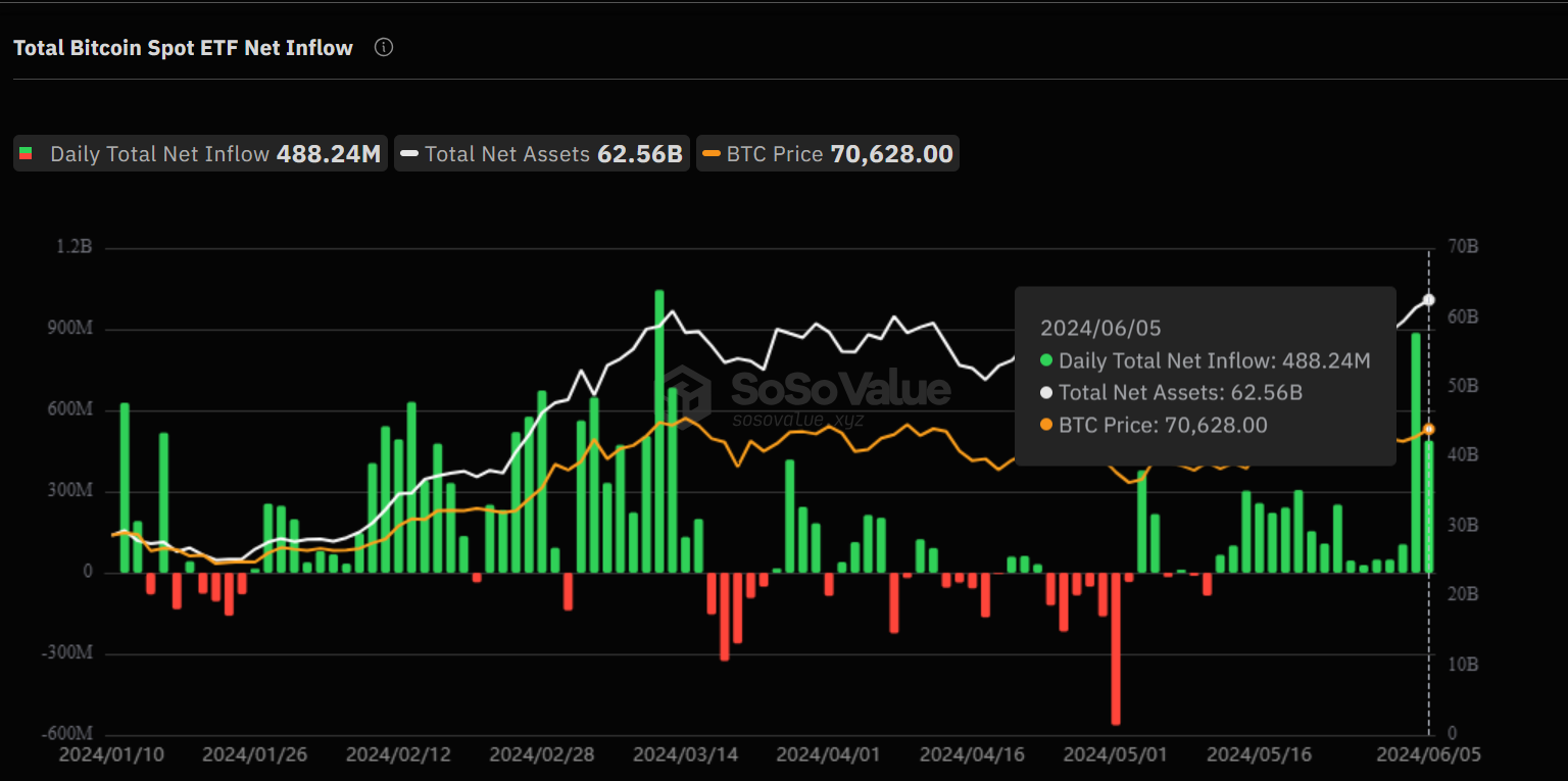 SponsoredVerder wees ze erop dat de gezamenlijke assets onder beheer van alle spot Bitcoin ETF’s zijn gegroeid tot ongeveer $58 miljard. Deze snelle groei benadrukt de toenemende interesse in Bitcoin ETF’s, vooral onder grotere instellingen.