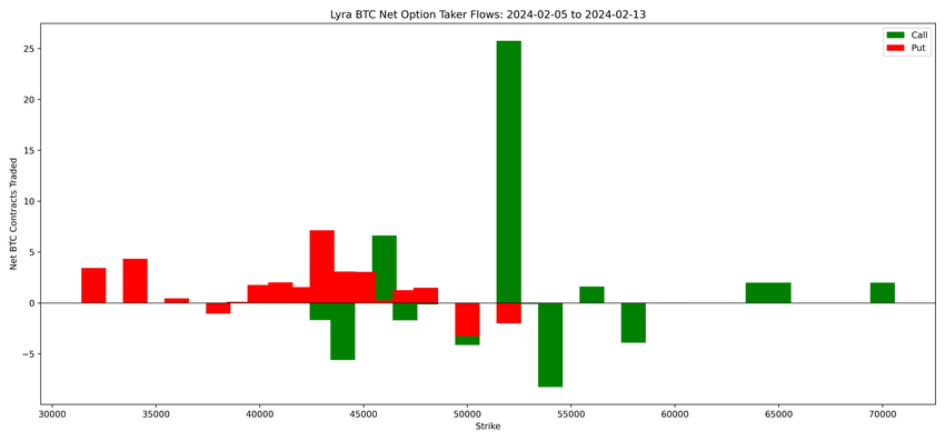De verwachting komt nadat klanten van Lyra de Bitcoin rally van $50.000 correct voorspelden. Volumes voor $52.000 callopties schoten vorige week omhoog voordat Bitcoin uitbrak. Handelaar in crypto-derivaten Samneet Chepal merkte echter een volumestijging op na 7 februari, toen Lyra nieuwe stimuleringsregelingen introduceerde, waardoor de oorzaak moeilijk aan te wijzen is.