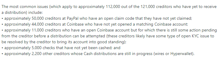 Hoewel opmerkingen op Reddit klantontevredenheid suggereren, kunnen de faillissementsprocedures binnenkort eindigen aangezien er nog maar een handvol verdelingen overblijven.