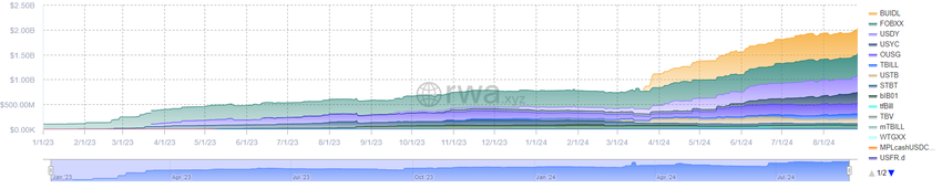 Volgens gegevens van RWA.xyz heeft de markt voor getokeniseerde schatkistpapieren onlangs een belangrijke mijlpaal bereikt. In slechts vijf maanden tijd is de marktkapitalisatie gestegen tot boven de $2 miljard.