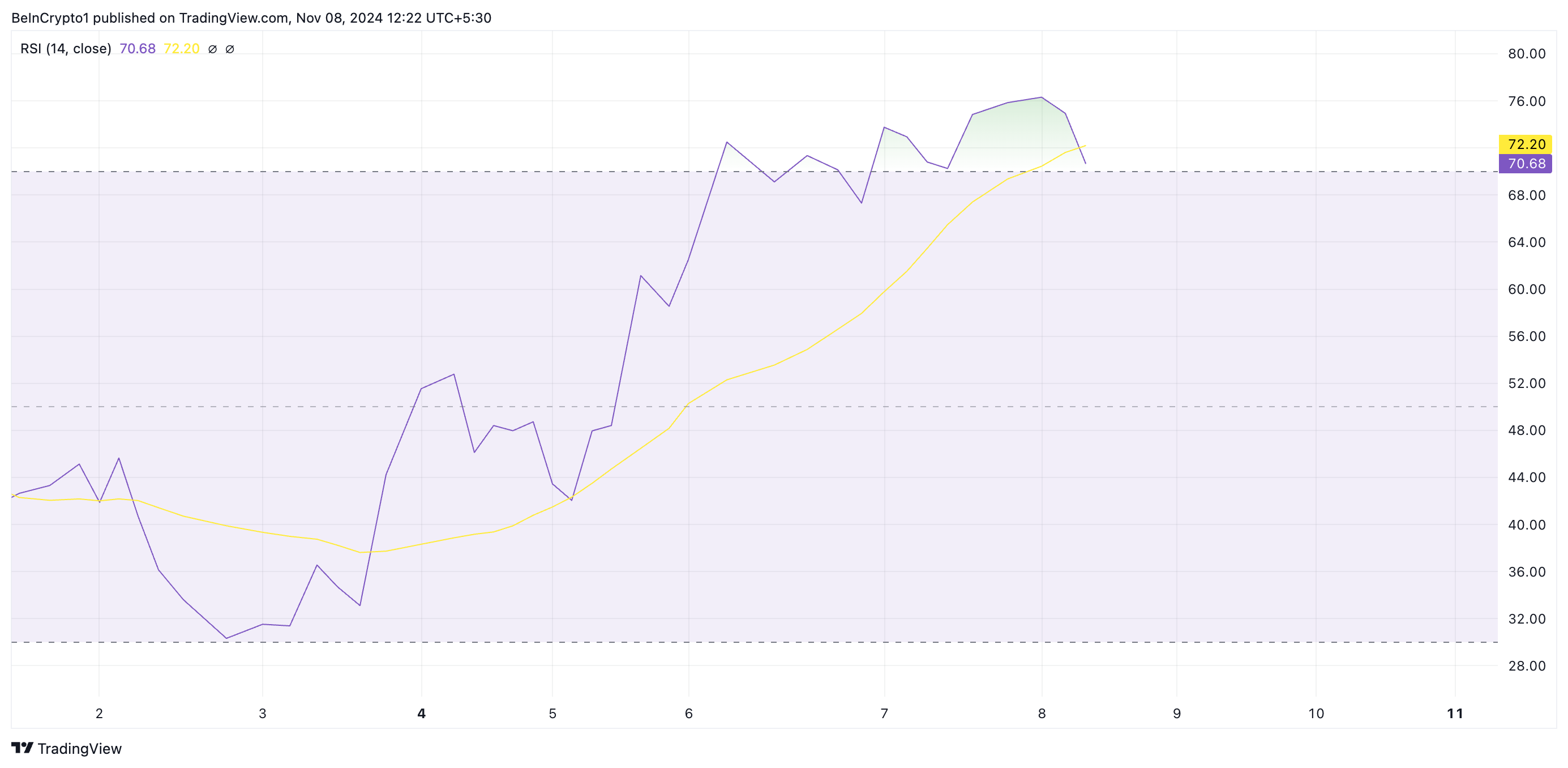 Opmerkelijk is dat de Relative Strength Index (RSI) van GOAT de oververhitte toestand van de markt bevestigt. Op dit moment staat deze op 70,68.