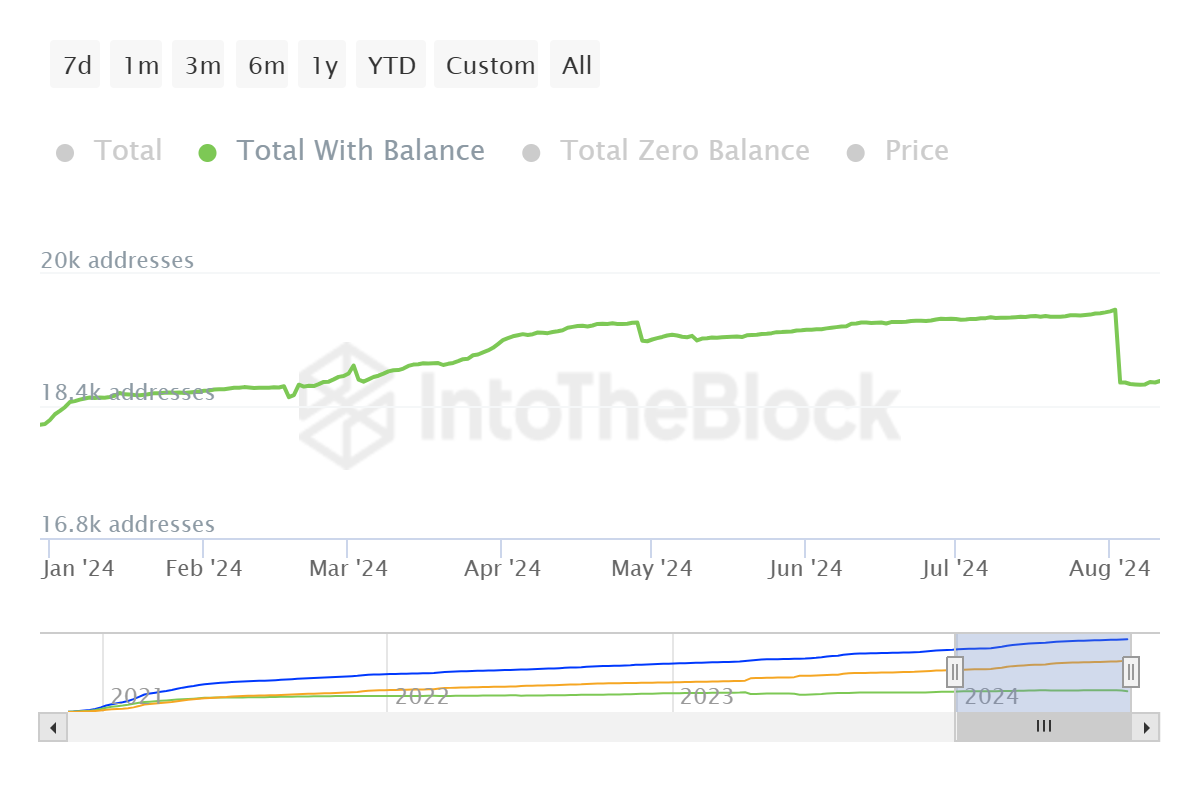 De onzekerheid onder investeerders als gevolg van de recente daling is duidelijk zichtbaar in hun gedrag. Skeptische GLM-houders verlieten het schip aan het begin van de maand toen de Golem koers met 15% daalde. Op één dag daalde het totale aantal adressen op het netwerk met 4,5%, van 19.500 naar 18.600.