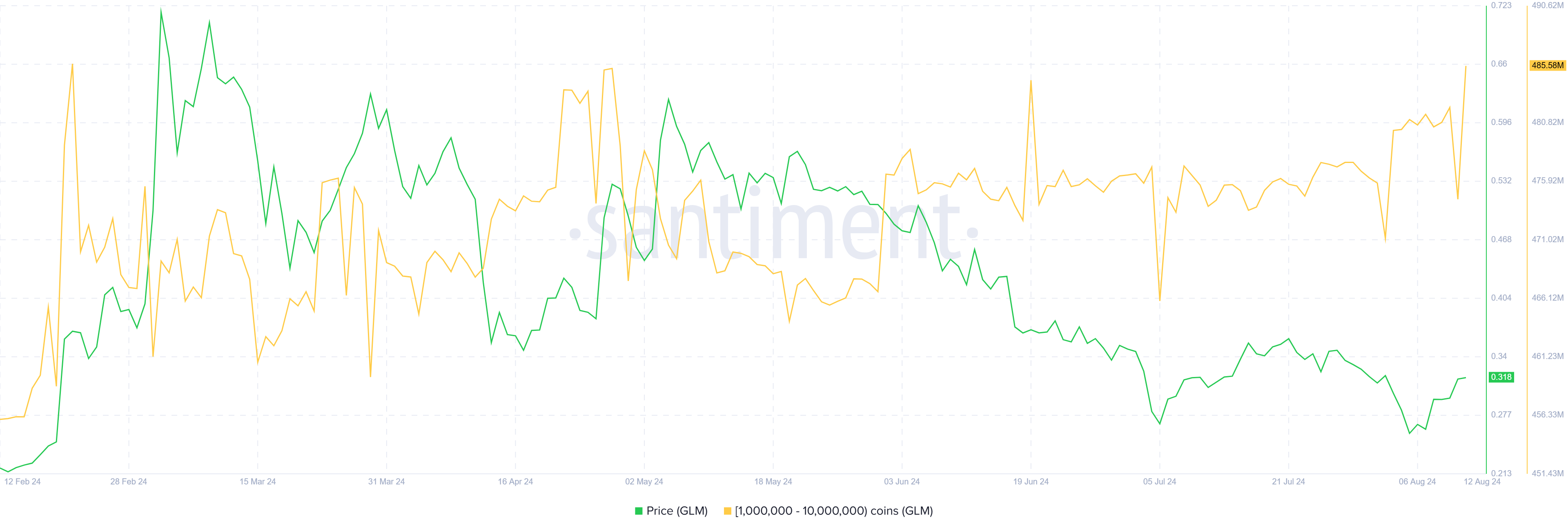 Aangekocht door adressen die tussen 1 miljoen en 10 miljoen GLM bezitten, is deze voorraad meer dan $3,5 miljoen waard. De accumulatie door whales wordt gezien als een bullish signaal, omdat zij de lage prijzen aantrekkelijk vinden en potentieel zien voor winst met de token.