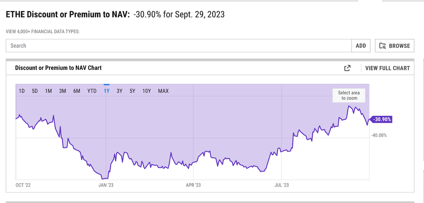 Op vrijdag werd ETHE verhandeld tegen een korting van 30,90% op de Net Asset Value (NAV). Maar met de indiening van NYSE Arca verwacht de community dat de korting zal krimpen. Een lid van de community schreef: