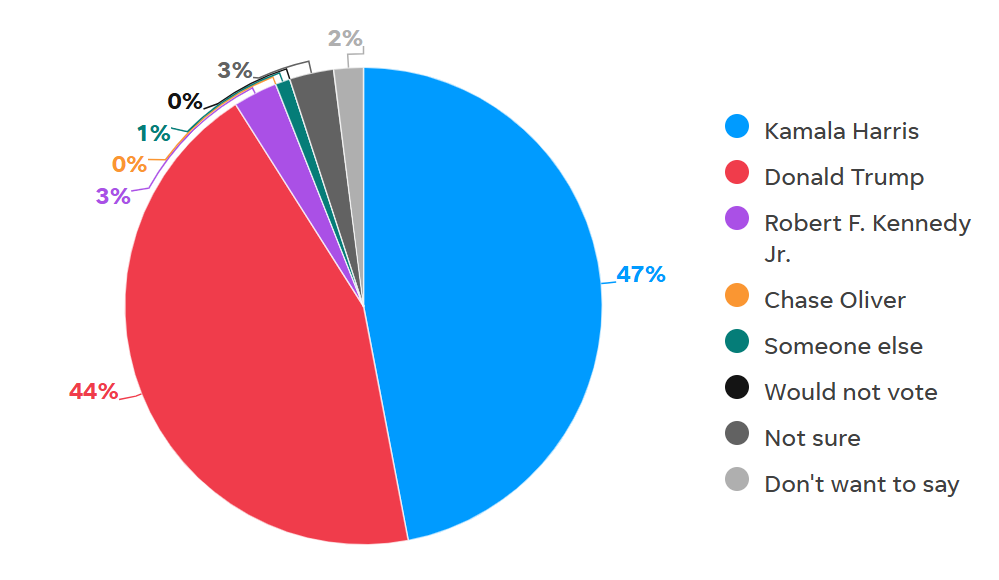 Ook traditionele peilingsgegevens weerspiegelen deze recente verschuivingen, met Harris die een lichte voorsprong heeft in belangrijke swingstaten. Zo wijst Polymarket haar recente winst toe aan nieuwe peilingen uit Iowa, waar Harris Trump verslaat met 47% tegen 44%, grotendeels door een toename in steun van vrouwelijke kiezers. Een overwinning van Harris in Iowa zou een aanzienlijke verandering betekenen, aangezien Trump de staat zowel in 2016 als 2020 won.