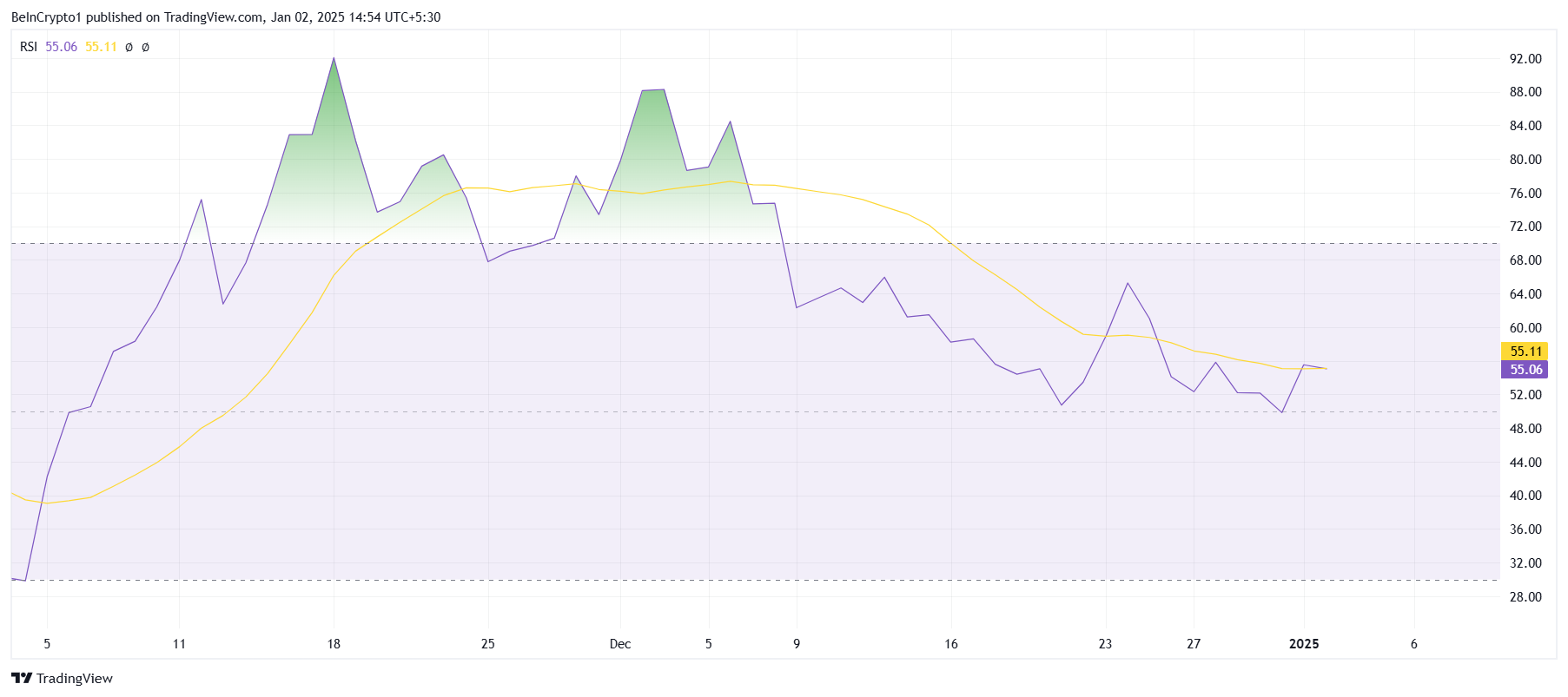 Ondanks het gebrek aan groei blijven bredere marktsignalen een bullish verwachting ondersteunen, wat enige hoop biedt op een koersherstel in de nabije toekomst.