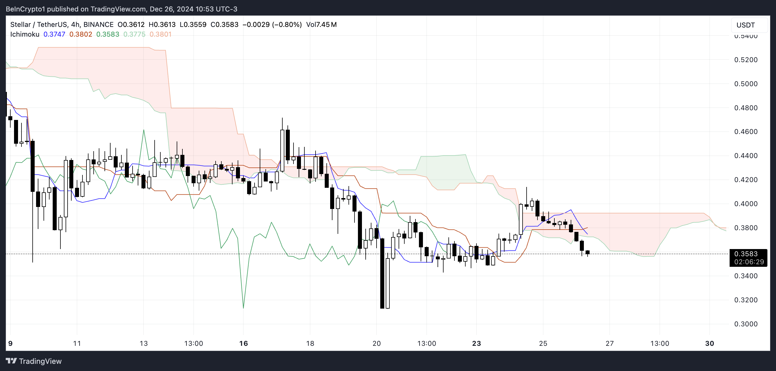XLM Ichimoku Cloud toont een sterk bearish setup