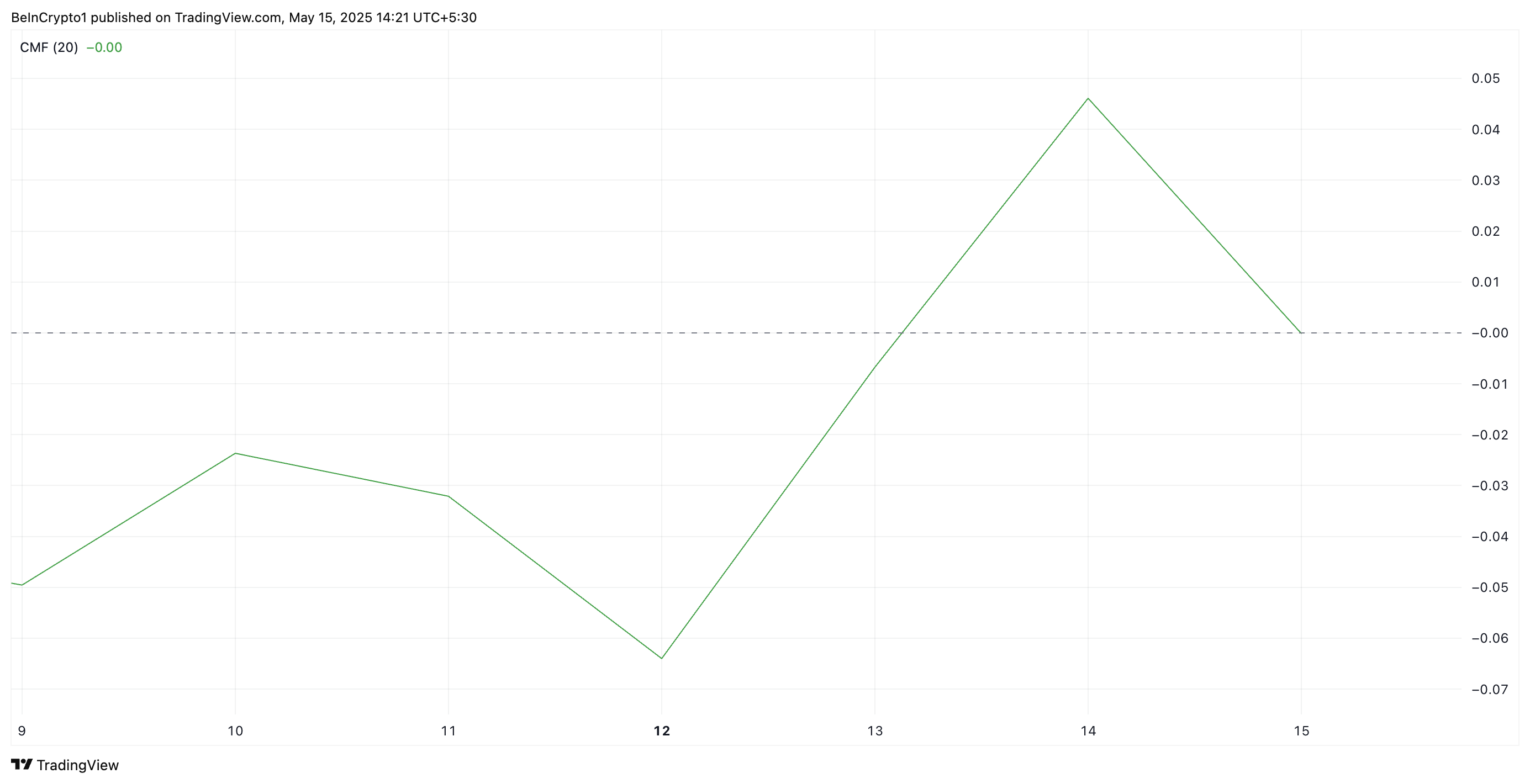 Op de HNT/USD 1-daagse grafiek daalt de Chaikin Money Flow (CMF) van de token, zelfs terwijl de koers stijgt. Op het moment van schrijven bevindt de CMF van HNT zich op de nul-lijn en staat op het punt eronder te breken.