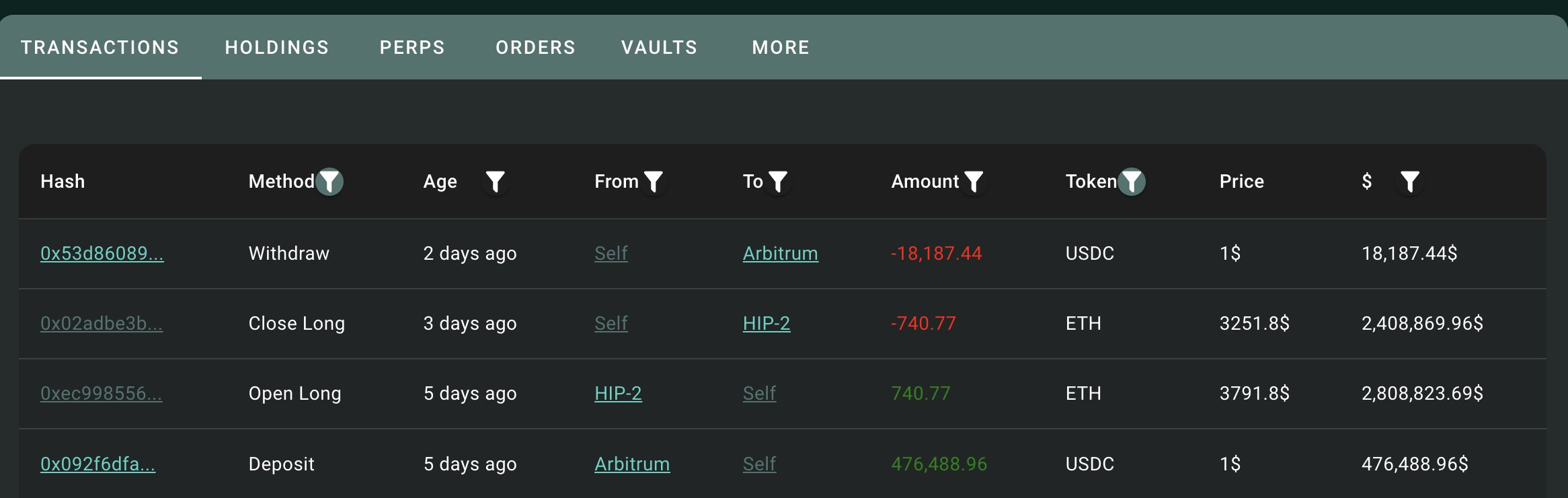 Hyperliquid heeft nog geen openbare verklaringen of aankondigingen gedaan om de beschuldigingen publiekelijk uit te leggen. In plaats daarvan onthult on-chain data dat aan Lazarus gelinkte accounts $476.489 aan ETH-tokens op Hyperliquid hebben gestort voordat ze deze vervolgens opnamen.