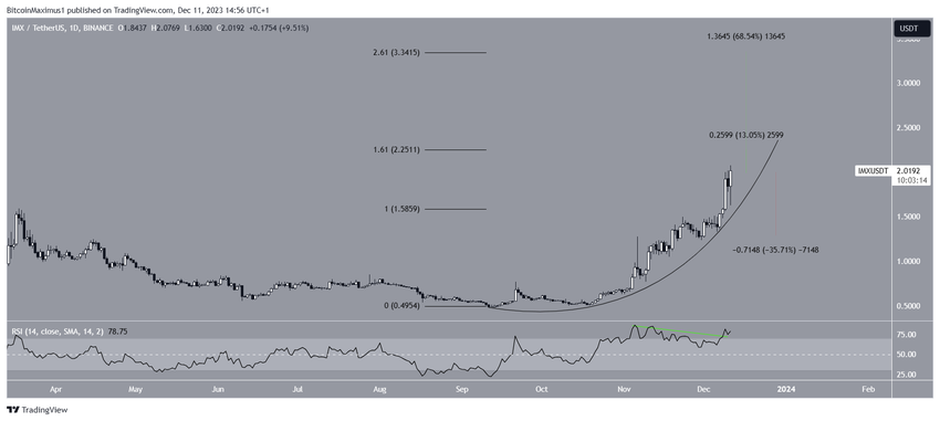De koers van Immutable (IMX) is sinds oktober snel gestegen, met als hoogtepunt een high van $2 vandaag.