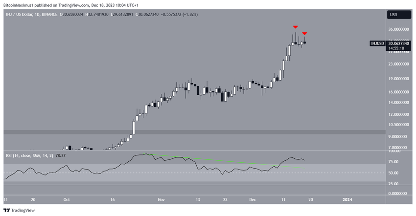 De Injective (INJ) koersstijging leidde op 15 december tot een nieuwe all-time high van $34,64.