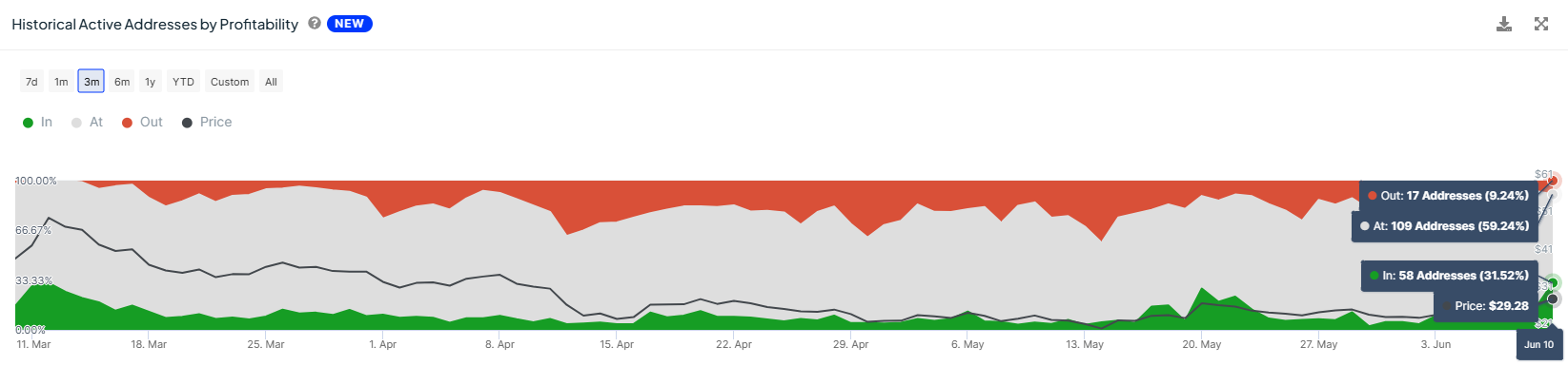 De deelname van deze groep wijst op potentiële verkoop en hun dominantie van meer dan 25% is een bearish teken. In het geval van INJ domineert hun aanwezigheid 31% van alle actieve adressen, wat pleit voor een bearish uitkomst.