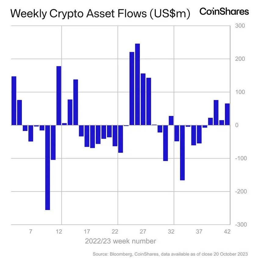 “De meeste recente instromen houden waarschijnlijk verband met de opwinding over de lancering van een Bitcoin ETF in de VS,” aldus CoinShares.