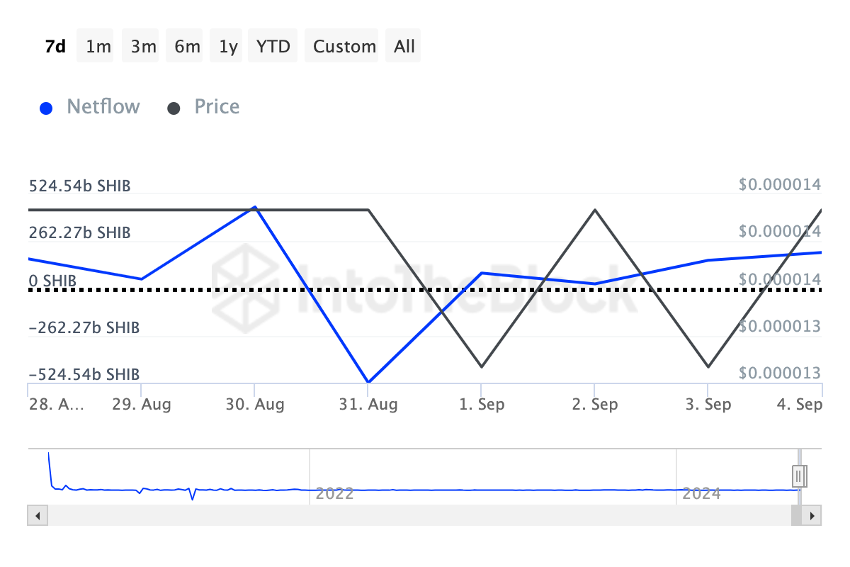 Aangezien de netto instroom aanzienlijk is toegenomen, hebben sommige van de top SHIB-houders meer tokens gekocht dan dat ze hebben verkocht. Als deze actie wordt voortgezet, zou dit een koersstijging voor de cryptocurrency kunnen stimuleren.