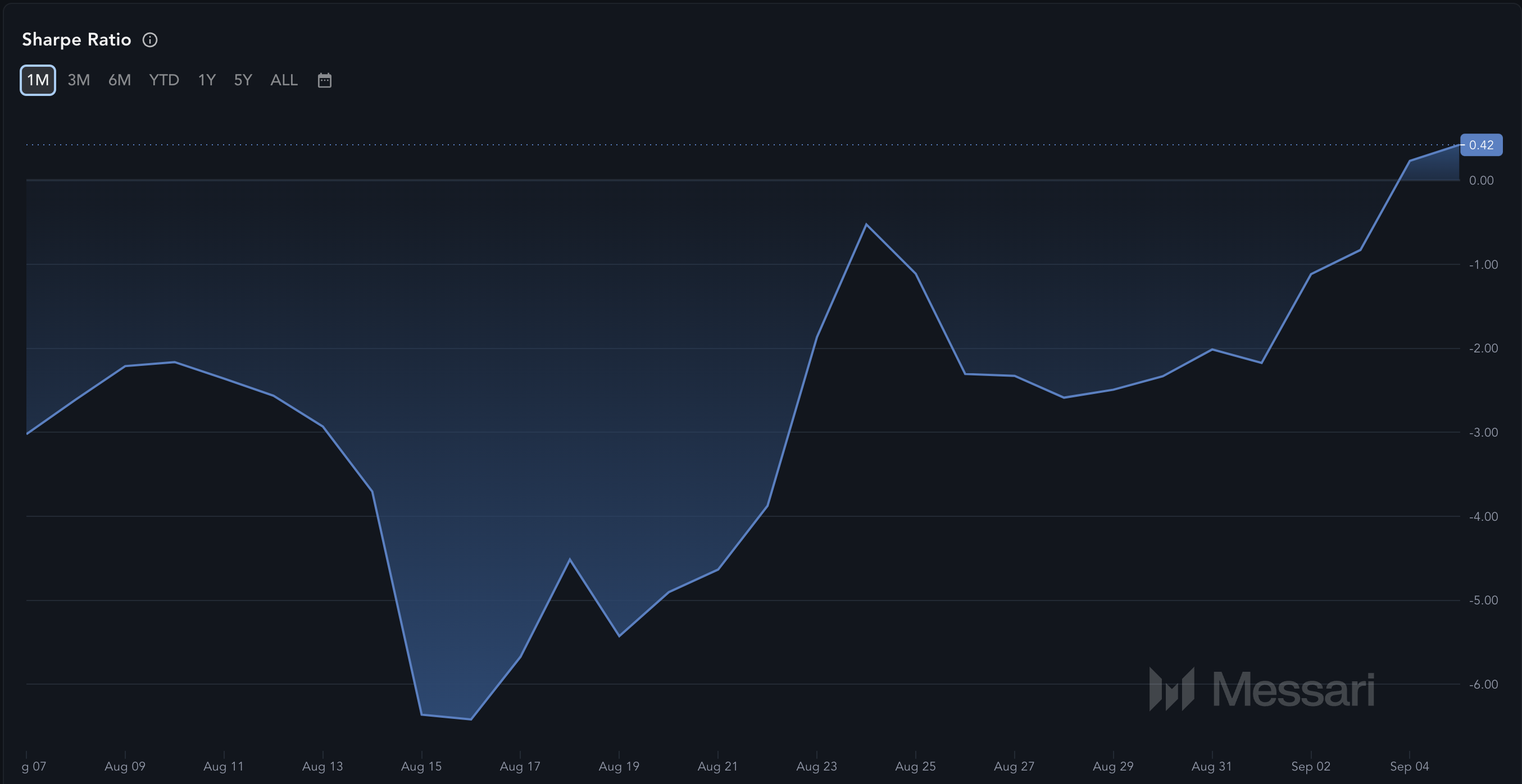 Shiba Inu Sharpe Ratio. Bron: Messari