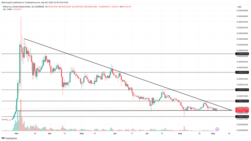 De dagelijkse grafiek van SHIB toont aan dat de token zich in een zes maanden durende neerwaartse trend bevindt. Maar deze lelijke realiteit zou binnenkort kunnen eindigen. Hoewel een snelle opwaartse trend op korte termijn misschien niet voorkomt, lijkt het onwaarschijnlijk dat SHIB opnieuw zal tuimelen zoals het deed in de eerste week van augustus.