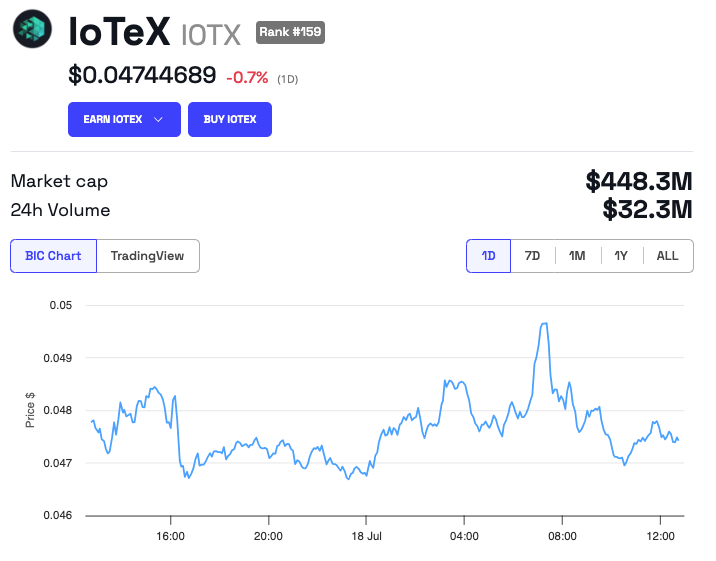 Ondanks deze vooruitgang blijven de prestaties van de IOTX token matig. Data van BeInCrypto toont een lichte daling van 0,7% in de afgelopen 24 uur, met de token momenteel gekoerst op $0,0474.