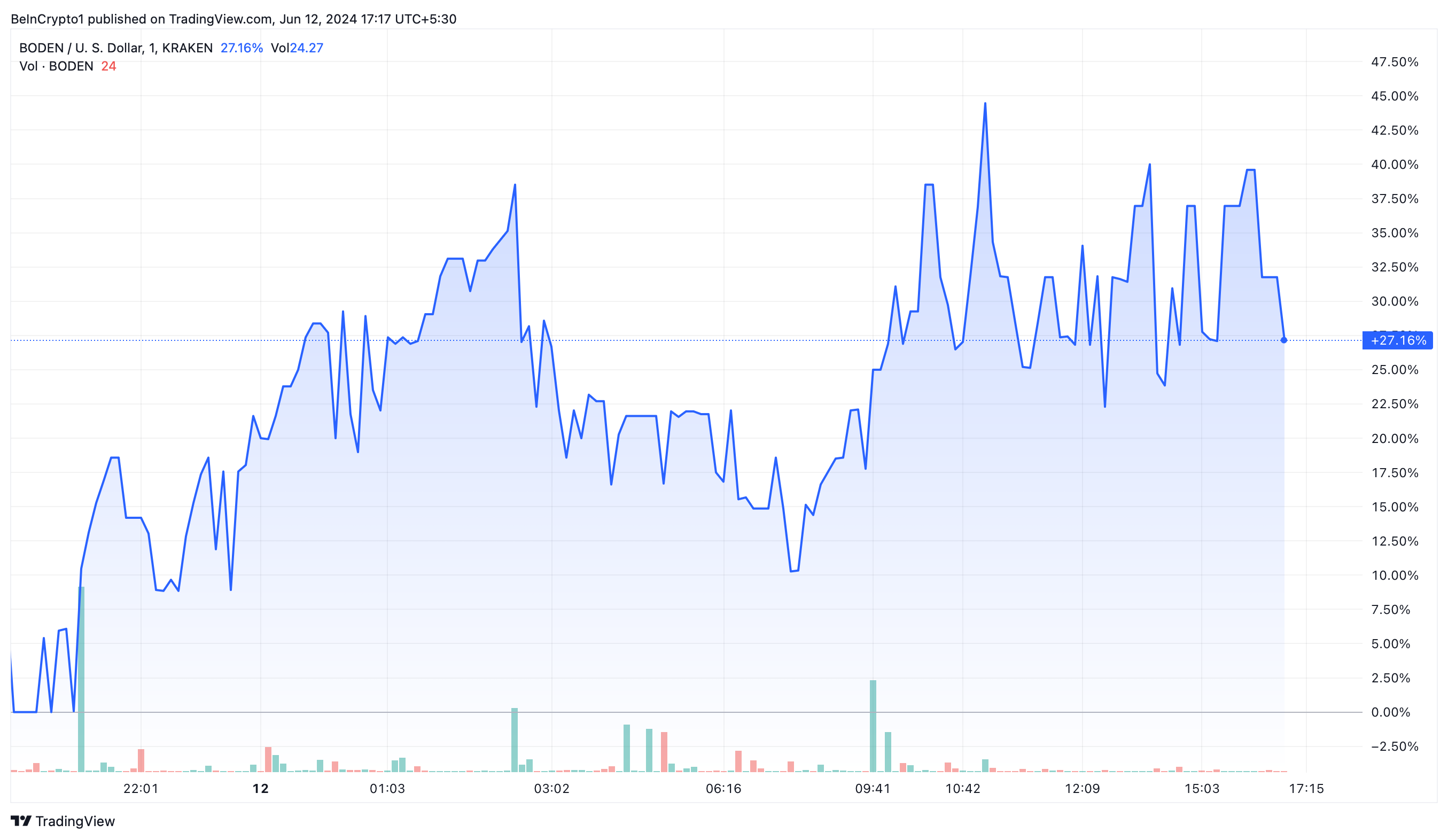 Het vonnis veroorzaakte dan ook een felle reactie op de cryptomarkt. Twee meme coins, Jeo Boden (BODEN) en Hunter Boden (HUNTBODEN), met speelse spelfouten van de naam Biden, kenden sterke koersschommelingen. BODEN steeg met 44% voordat het afsloot met een winst van 27%.