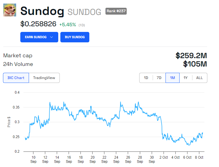 Tegen deze achtergrond is de SUNDOG koers echter met 5,45% gestegen. Het heeft effectief beter gepresteerd dan toonaangevende meme coins zoals DOGE, SHIB en PEPE, die tussen 6% en 10% zijn gedaald. Op het moment van schrijven wordt de Tron meme coin verhandeld voor $0,2588.