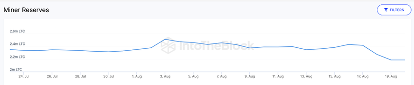 Geëscaleerd door de halvering van 2 augustus, stijgende energiekosten en de prijsdump van 17 augustus, hebben LTC-miners hun reserves de afgelopen weken snel uitgeput.