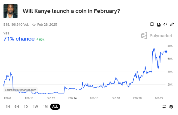 Hoewel een officiële lanceringsdatum onzeker blijft, blijft de speculatie toenemen. Gegevens van Polymarket, een gedecentraliseerd voorspelling platform, suggereren momenteel een kans van 71% dat de token deze maand debuteert, met meer dan $18 miljoen ingezet op de release.