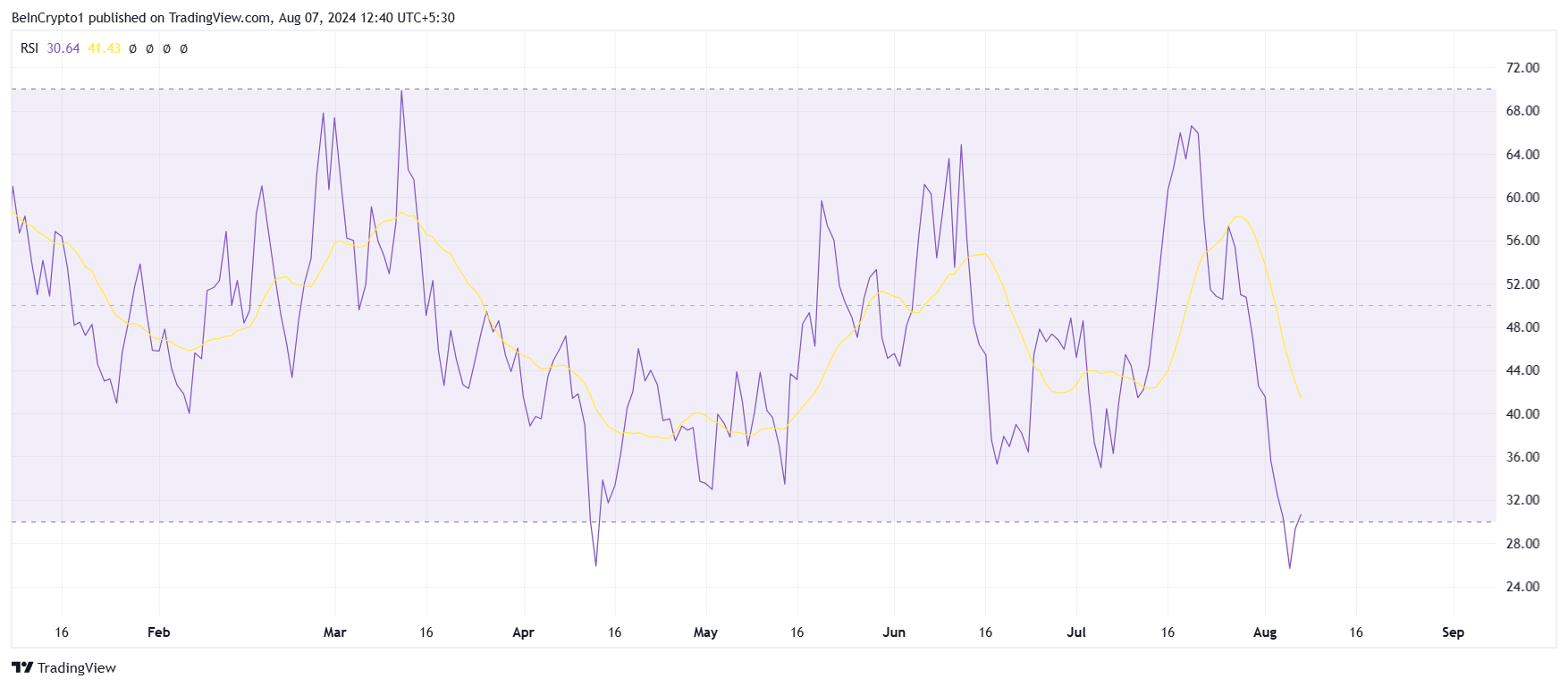 De Injective koers probeert langzaam de verliezen van de afgelopen dagen terug te winnen. Signalen hiervan zijn ook zichtbaar in de Relative Strength Index (RSI), die recentelijk voor het eerst in vier maanden de oversold-zone heeft bereikt, wat duidt op een mogelijk koersherstel.