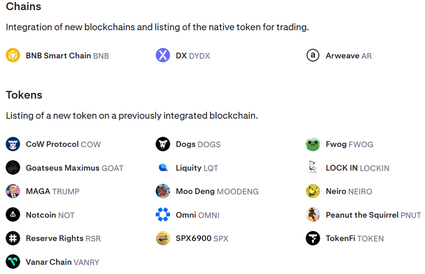 Naast deze drie, is Kraken van plan om 16 andere tokens te noteren, voornamelijk meme coins. Enkele van de opmerkelijke toevoegingen zijn FWOG, TRUMP, NEIRO, DOGS, GOAT, PNUT, MOODENG en COW, samen met acht anderen. Deze tokens behoren tot blockchains die al geïntegreerd zijn in Kraken’s ecosysteem.