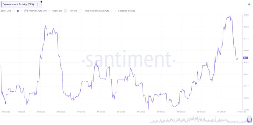 Bovendien was er in november een sterke stijging in de uitstroom van ZRX op exchanges. Dit betekent dat mensen de token van exchanges halen, bij voorkeur om te houden of te gebruiken voor ontwikkelaarsactiviteiten.