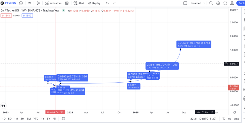 - De ZRX token zou echter een high van $1.5121 kunnen bereiken op 15 september 2025.