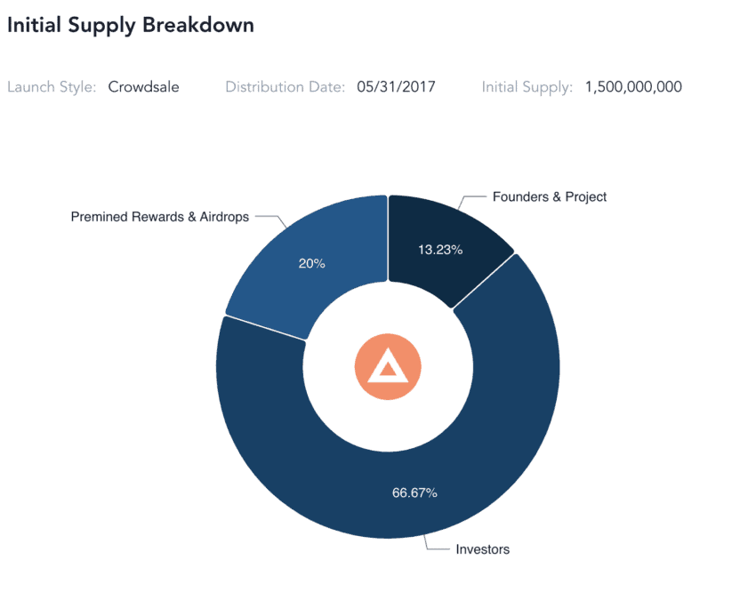 Volgens het plan voor de uitgifte van slimme contracten heeft het Basic Attention Token ecosysteem een aanbodplafond van 1,5 miljard BAT tokens. Bij de eerste verdeling van het aanbod ging meer dan 66% van de tokens naar investeerders. Momenteel is 100% van de BAT tokens in omloop, waardoor het hele tokenmodel zeer liquide is.