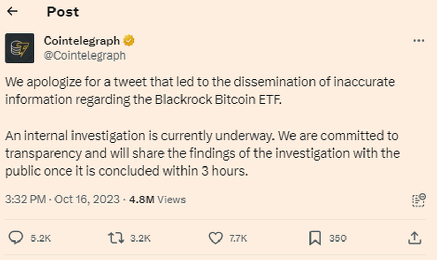Je kunt bijvoorbeeld grote pieken zien halverwege juni, die samenvielen met de Blackrock ETF aankondiging, en in oktober, die samenviel met het Cointelegraph false spot bitcoin ETF nieuws, dat de markt in rep en roer bracht.
