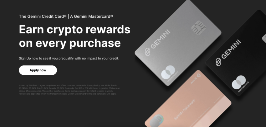 - Beloningen: De Gemini Credit Card biedt tot 3% terug op eten, 2% terug op boodschappen en 1% terug op andere aankopen, waarbij de beloningen in realtime worden gestort op de Gemini-rekening van de kaarthouder.
