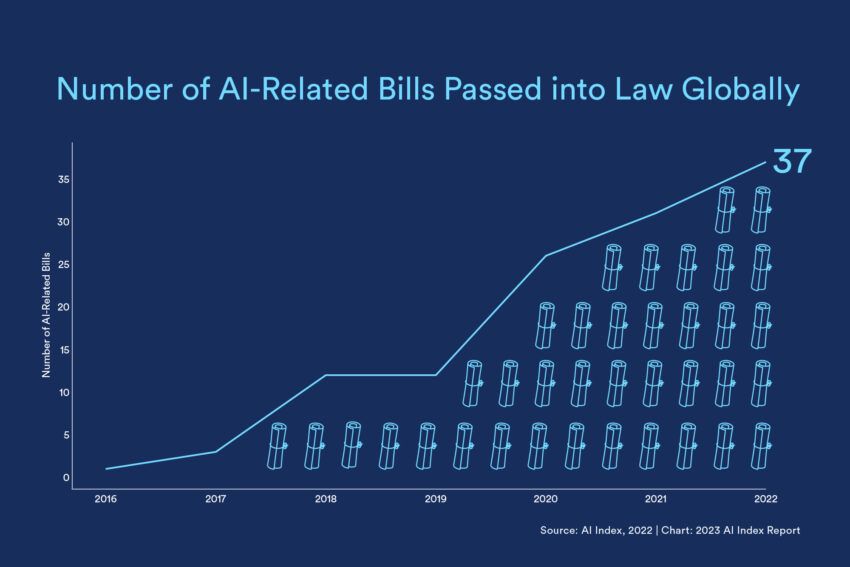 In de dynamische tech- en financiële ruimte bieden verschillende blockchain aandelen innovatieve beleggingsmogelijkheden met AI. Wetgevende acties, zoals het AI-opleidingsprogramma van het Amerikaanse Office of Management and Budget, onderstrepen het groeiende belang van AI en blockchain. Sinds 2016 zijn er wereldwijd 123 AI-gerelateerde wetsvoorstellen aangenomen, de meeste in de afgelopen jaren.