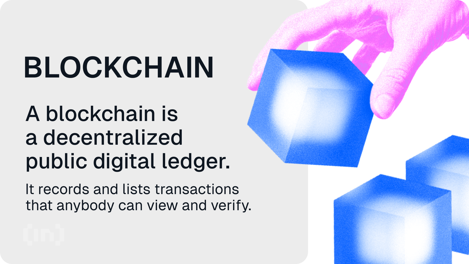 Blockchain is een gedecentraliseerd digitaal grootboek dat data opslaat in een gedistribueerd netwerk. Het is ontworpen om informatie te beveiligen en geknoei en ongeoorloofde toegang te voorkomen.