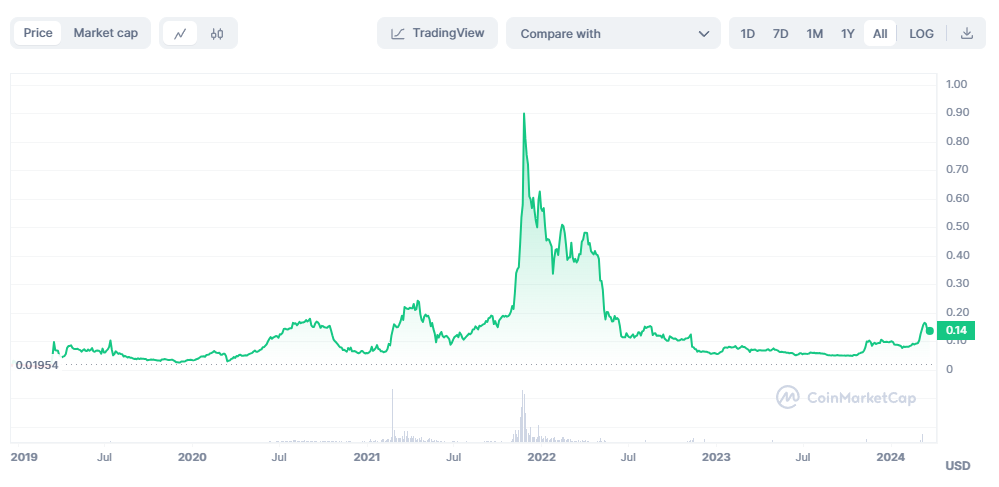 Met een marktkapitalisatie van iets minder dan $4 miljard en een circulerende voorraad (24u) van 35+ miljoen staat CRO momenteel op #36 in de lijst van topcryptocurrencies (volgens marktkapitalisatie) op 21 maart 2024.