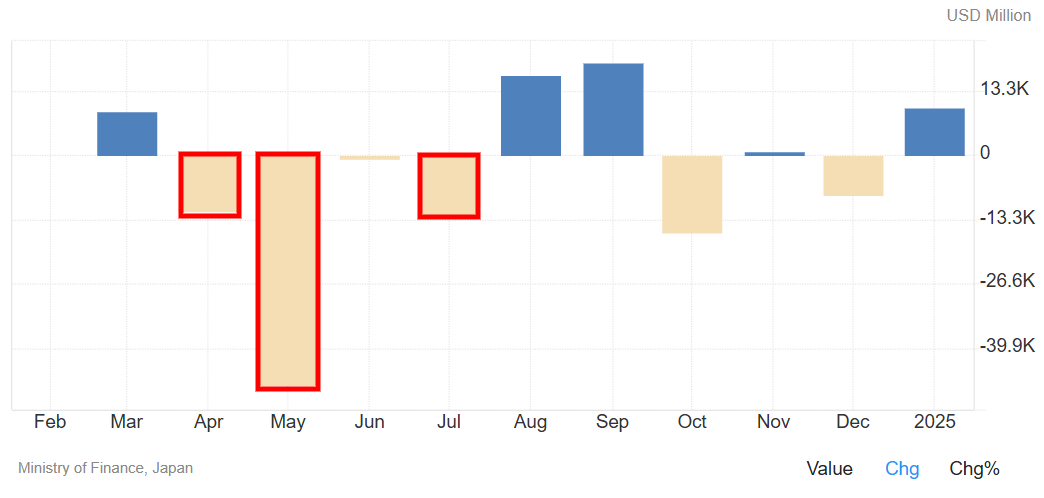 ➤ Japan heeft tussen 26 april en 29 mei 2024 een recordbedrag van 9,79 biljoen yen ($ 62,2 miljard) uitgegeven en in juli 2024 5,53 biljoen yen aan valutamarktinterventies om de yen te ondersteunen.